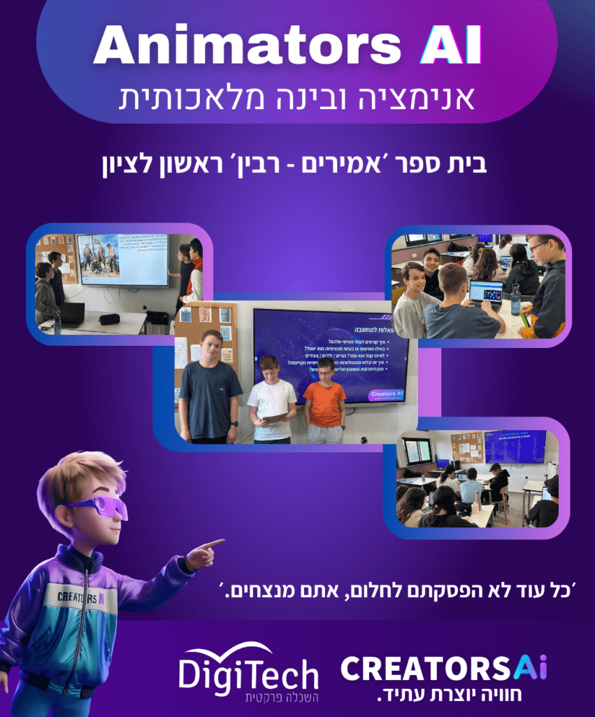 איך הופכים חלום לסרטון אנימציה ואיך מתכננים עתיד כלכלי חכם? תלמידי אמירים רבין ראשון לציון יצאו למסע מרתק עם 'דיגיטק השכלה פרקטית' וחטיבת קריאטורס, המשלב בין עולמות ה-AI למיומנויות פיננסיות לחיים.