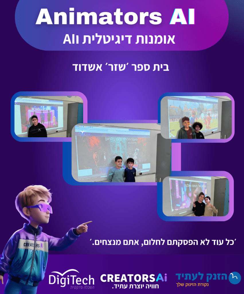 בשיתוף פעולה עם דיגיטק השכלה פרקטית – חטיבת קריאטורס, נהנו השנה תלמידי כיתות ג' ו-ד' בבית הספר שזר באשדוד מחוויית למידה יוצאת דופן בתוכנית Super AI. התוכנית הכניסה את התלמידים אל תוך עולם של חדשנות, בו הם לא רק צרכנים של טכנולוגיה, אלא יוצרים פעילים המפיחים חיים בדמיון שלהם.